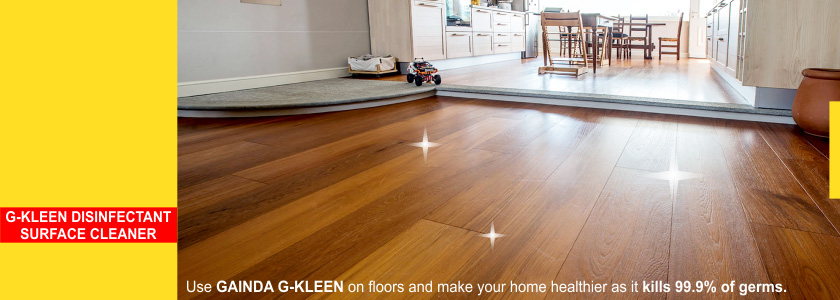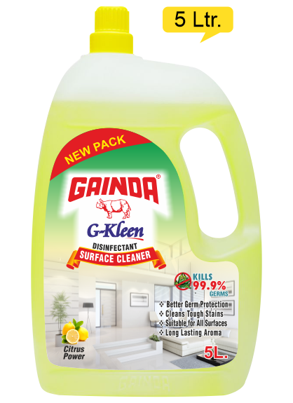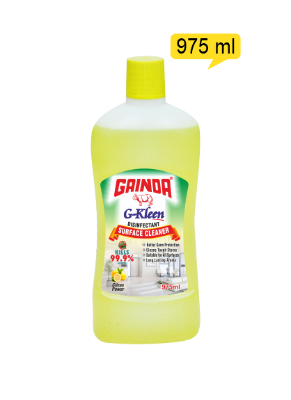 GAINDA G-KLEEN is a very effective disinfectant surface cleaner. Use GAINDA G-KLEEN on floor, bathroom and kitchen surfaces to remove dirt, tough stains and make your home healthier as it kills 99.9% of germs. This disinfectant cleaner can be used directly on stains for spot cleaning, or diluted in water for use on hard surfaces like bath tubs, toilets, wash-basins, showers, kitchen sinks and counter tops etc. G-KLEEN is safe on all hard surfaces like Marble, Granite, Ceramic tiles, Mosaic etc.