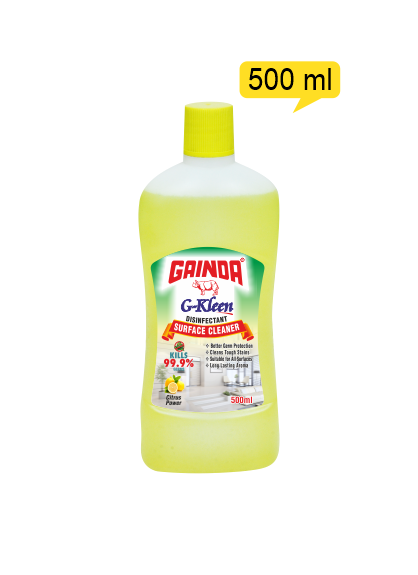 GAINDA G-KLEEN is a very effective disinfectant surface cleaner. Use GAINDA G-KLEEN on floor, bathroom and kitchen surfaces to remove dirt, tough stains and make your home healthier as it kills 99.9% of germs. This disinfectant cleaner can be used directly on stains for spot cleaning, or diluted in water for use on hard surfaces like bath tubs, toilets, wash-basins, showers, kitchen sinks and counter tops etc. G-KLEEN is safe on all hard surfaces like Marble, Granite, Ceramic tiles, Mosaic etc.